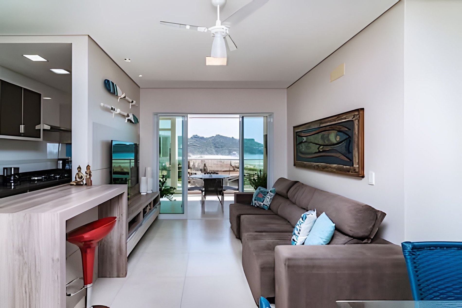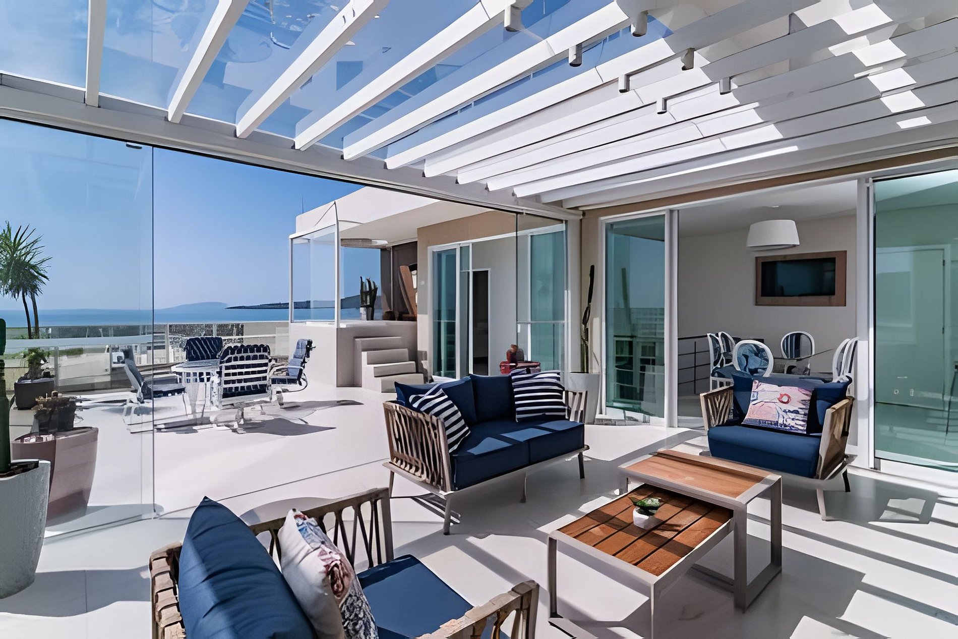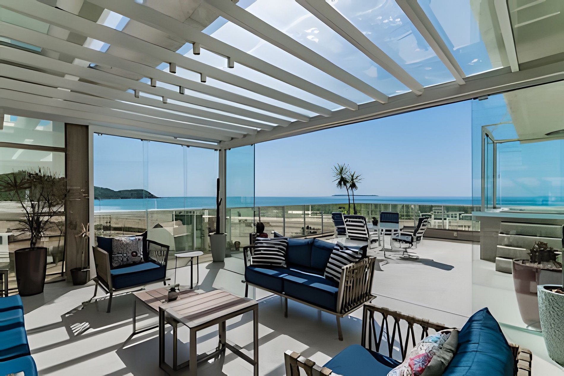 o com sofas para descanso e vista mar !