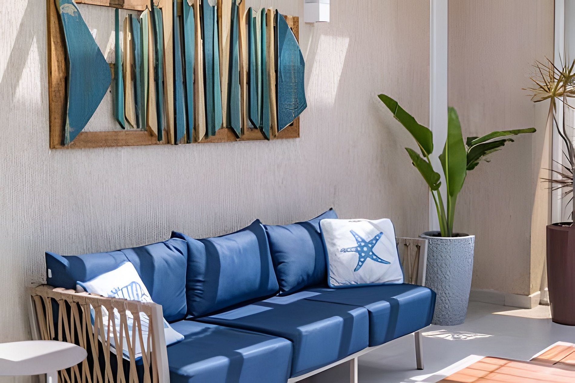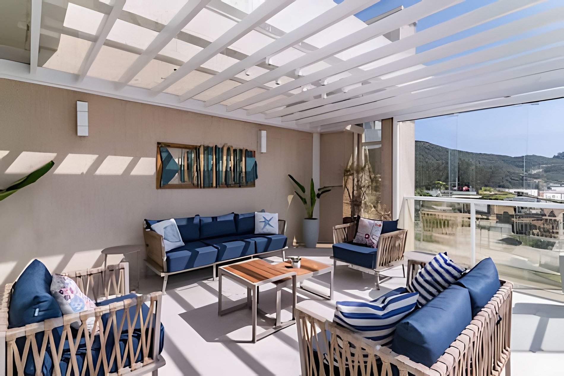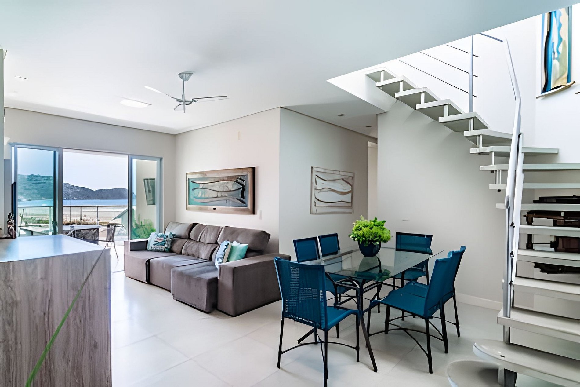 o com sofas para descanso e vista mar !